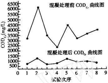 圖1 絮凝處理前后CODcr值變化圖
